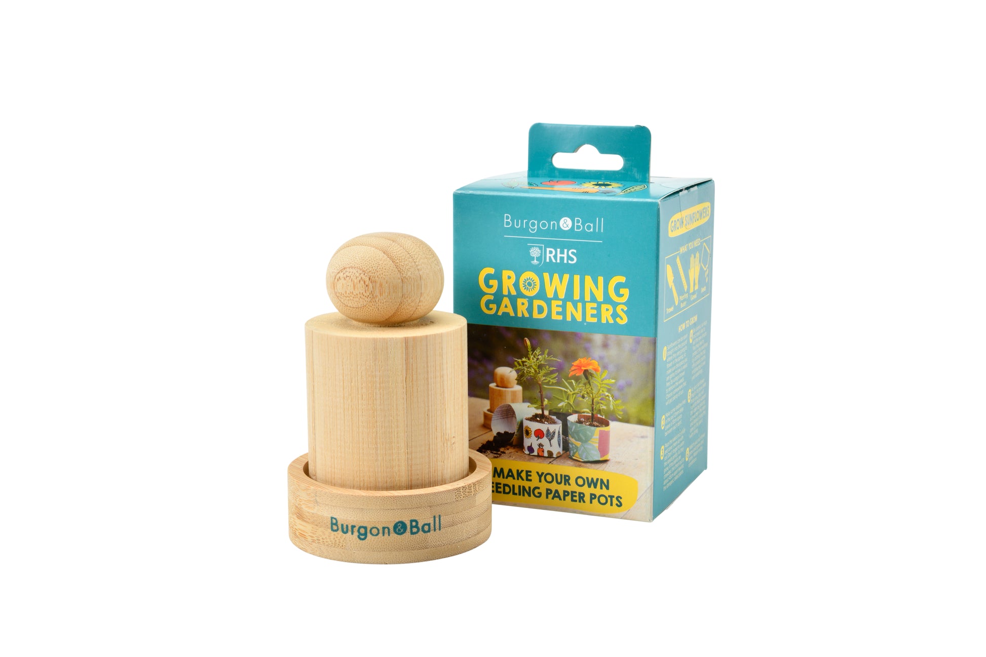 The pot-making kit is made in FSC®-certified bamboo, and is part of the RHS Growing Gardeners collection of children’s gardening tools and accessories, designed to make gardening with children easy and fun. Like all the items in the collection, this pot maker carries CE and UKCA certification, demonstrating that it meets EU and UK standards for health, safety, and environmental protection.