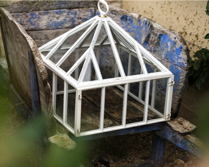 Hver cloche er fagmessig håndglasert med kitt og hagebruksglass, og deretter ferdig i en tradisjonell off-white farge for å gi et tidløst utseende og følelse. Til slutt gir et håndtak i antikk design og vakker messingplakett en siste finish av eleganse.