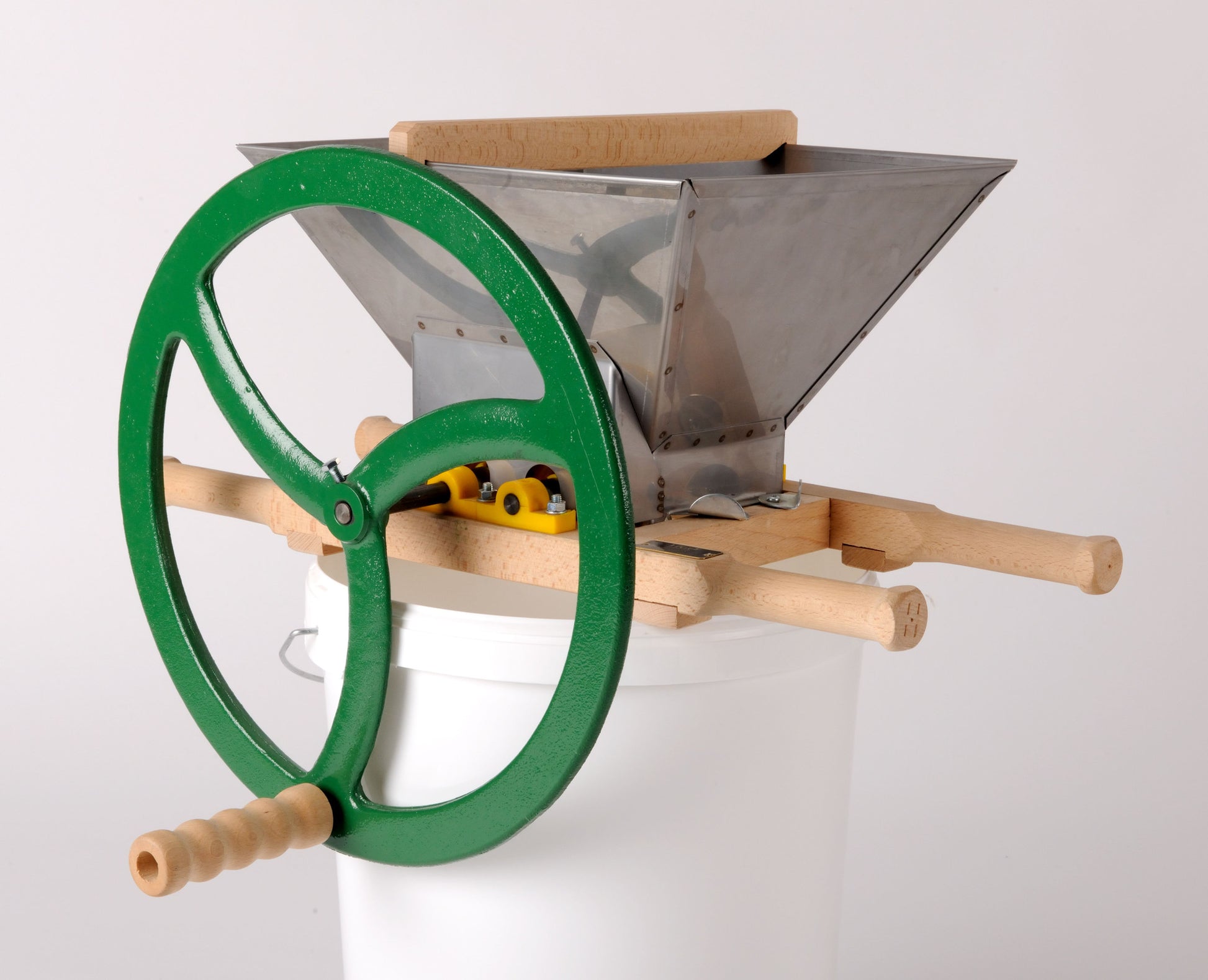 Den har vært i salg i over 25 år. Utstyrt med rustfritt stål kuttere og ruller. Håndhjul av støpejern gjør knusing så enkel at barn kan bli med.